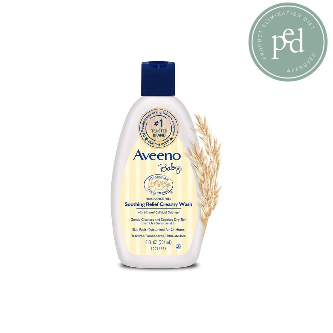 Details: Aveeno Baby Soothing Relief Creamy Wash gently cleanses and leaves skin feeling moisturized for 24 hours. Formulated specially to soothe babies' dry, sensitive skin, this pediatrician-recommended wash with Active Naturals Oatmeal is clinically shown to moisturize and relieve dry skin. The oatmeal helps maintain the skin's moisture barrier to help prevent and protect against dryness. The creamy wash leaves skin feeling moisturized for 24 hours and is tear-free, fragrance-free, soap-free, and paraben-free.