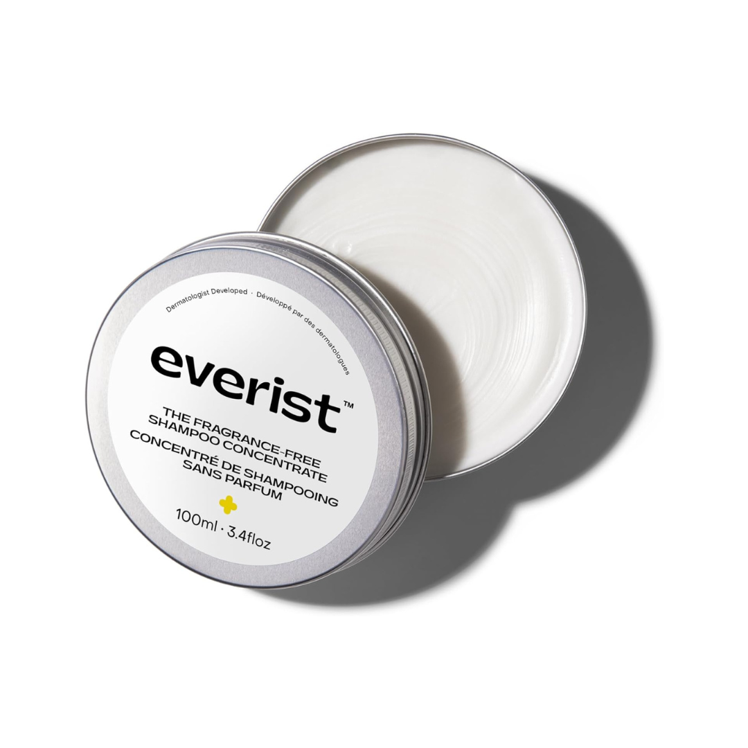 Everist The Fragrance-Free Shampoo Concentrate, Cleansing, Hydrating and Soothing for All Hair Types, Sensitive Skin, Gentle On All Scalps, Plant-based, Aloe Vera, 100ml, 50+ Washes, Tin